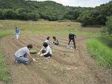 にんにくの種、ちいさな箒のようなところから取り出したにんじんの種、そして、秋じゃがの植え付けにかぼちゃの苗と、今回はいろいろな種を植えることができて楽しかった。早く芽が出て、収穫できる日が待ち遠しいかぎりです。日ごろお世話くださってる橘さん、ほんとうにありがとうございます。