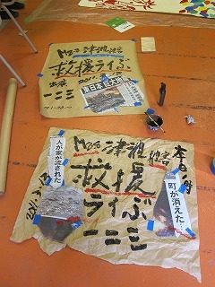 ライぶ会場で、『緊急カンパ』のお願いをしよう。すでに東北にボランティアスタッフを派遣したNGO協働センターの村井さんに託して、現地に届けてもらおうということになりました。ぜひ一人でも多くの参加とカンパへのご協力をよろしくお願いします。