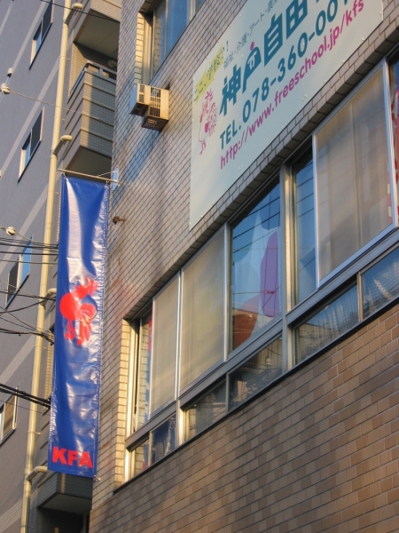 今日、 「神戸自由学院」のビルの壁面に、ゴウくんデザインの看板とほのちゃんデザインの風見鶏のタペストリーが取り付けられました。すこ?し学校らしくなってきたような気がします。