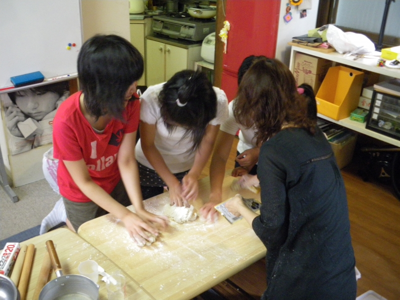 まずは生地をこねこねパン作り