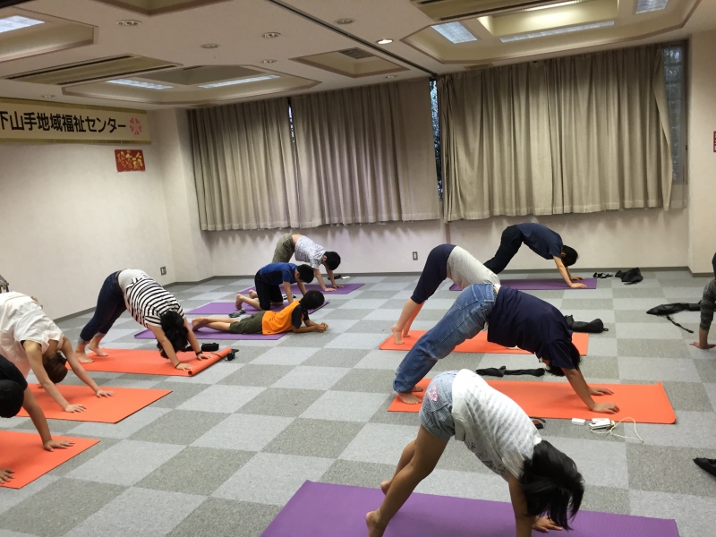 フィリピン人のヨガ講師シェリーさんの指導を受けてもうすぐ4年になります。はじめは教室でやっていたのですが、参加する生徒がふえ、いまでは隣の地域センターを借りて、毎月1回開催しています。一般の方も参加できます(ワンコイン)。飛び入り参加を歓迎します。活動時間は、3時~4時までです。