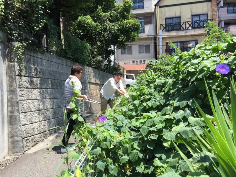 中高生が暑いさなか、夏草とのバトルにいい汗ながしています。「なんでこんなに強いの、このつる」「終わりそうにないなぁ」「センセ、なにタバコすうとん?」口々に感想をもらしながら、だる~い夏の日が過ぎていく。