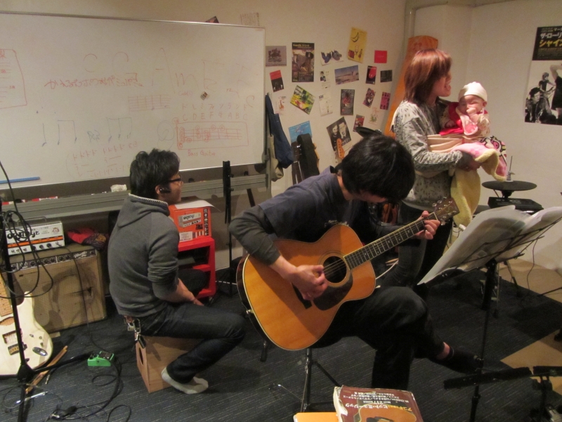 3月20日の「音屋祭」について、親の会で出店のことなどが話し合われた。当日出演予定のタカヨとケンタのライブは、15年ぶりだ。卒業生でもあり、元スタッフでもあるタカヨちゃんは、二人目の「れなちゃん」を抱いて仕事帰りのケンタと夜おそくまで音楽室で練習。監督に大阪からまこと君もかけつけてくれ、いよいよ本格的に練習が始まった感じです。