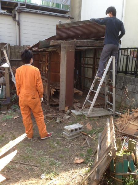 地主さんの依頼があり、震災後から放置されたままの小屋、そこにネコが住みついて、ボクらは「ネコ小屋」と呼んでいた。今日、スタッフがその解体作業を実行。