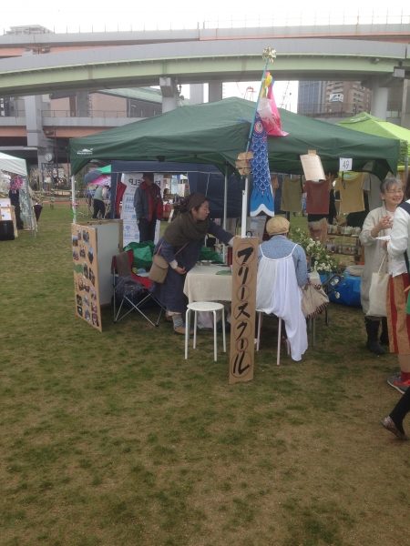 去年に引き続き今年も連休の4日・5日は神戸港ちかくの公園で「アースデー」に出店。といってもなにを売るわけでもなく、「フリースクールを知って!」という目的でブースを開いた。